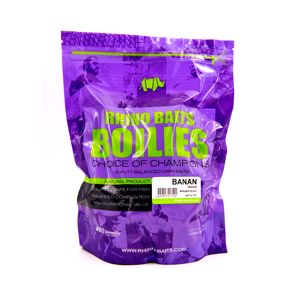 Rhino Baits Banana (банан) – абсолютно новая серия бойлов и очень популярная среди карпятников всего мира. Эта серия бойлов имеет яркий и плотный желтый цвет, отлично визуально привлекающий рыбу. Сладкий плотный и устойчивый аромат, является визиточной карточкой всех фруктовых и сливочных бойлов у многих производителей. Бойлы Banana идеально сочетаются в прикормочных миксах с многим линейками карпового питания компании Rhino Baits, это очень универсальная прикормка и насадка, которая позволяет ловить карпа на всех водоёмах, где он в принципе есть. Они способны активно привлекать карпа в воде совершенно разной температуры, в любое время года, но особенно в летний период, в теплой воде.