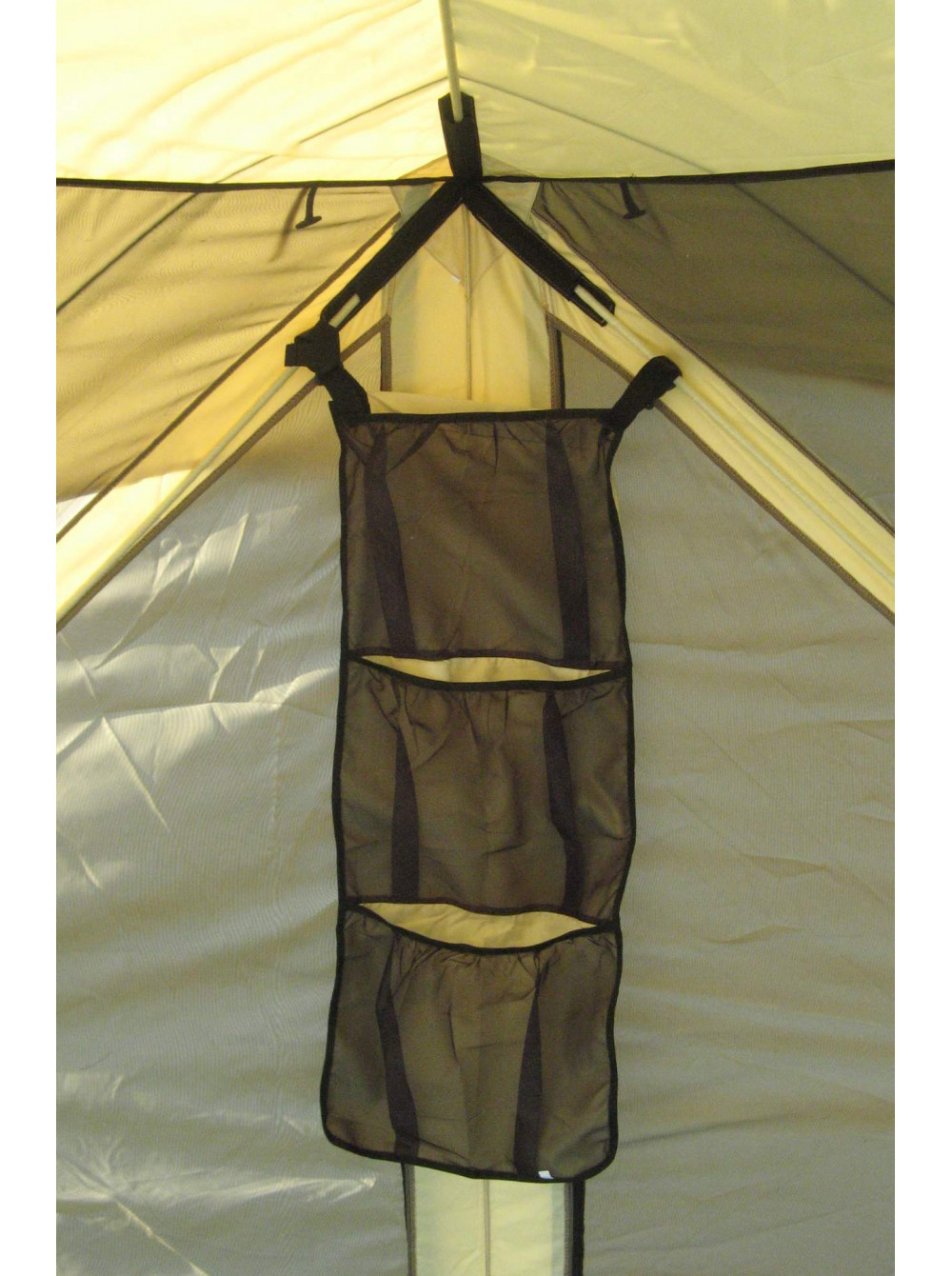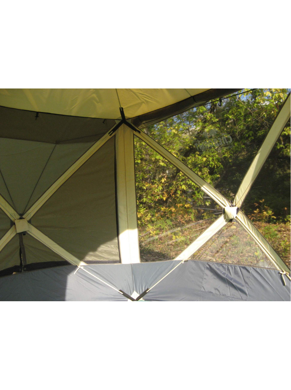 Для хорошего освещения внутреннего пространства на каждой из пяти сторон шатра располагаются большие окна с москитной сеткой для защиты от насекомых, а для защиты от дождя они закрываются занавесами.